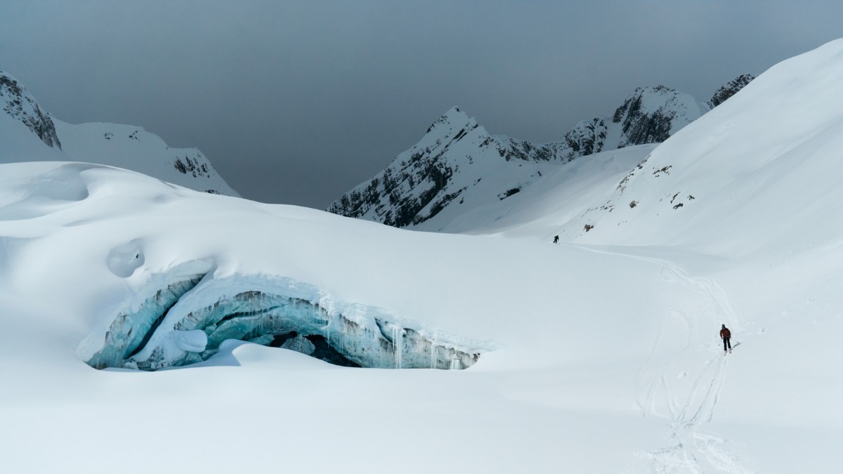 A late-afternoon storm crept in from the west as we picked up the pace and skied back toward the lodge passing a hidden ice cave we hadn't noticed on the uptrack. Honestly, my one lingering regret from this whole trip is that I didn't speak up and voice my interest to detour to the Mons ice cave. But I felt better about it when Ali admitted he has a healthy fear of how sketchy and temperamental they can get. Plus, the rest of the crew had explored enough of them that the novelty had worn off for them anyway.