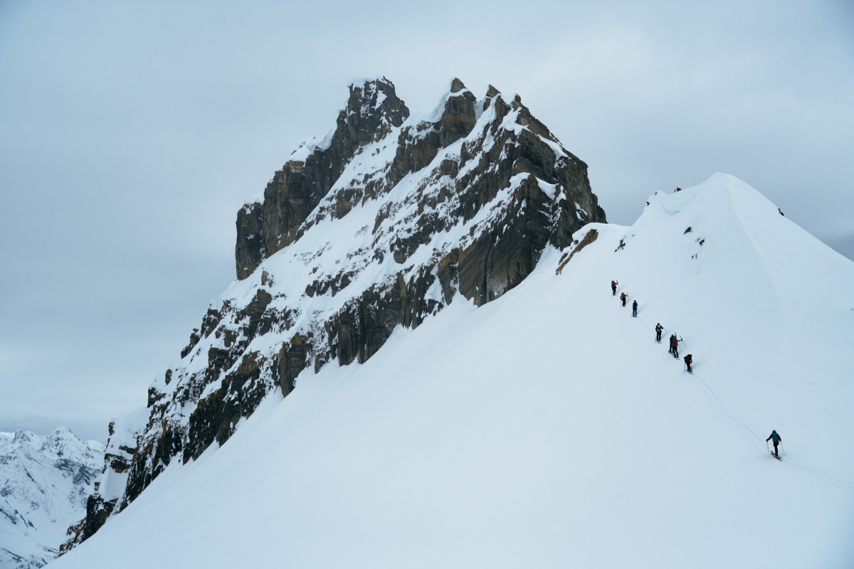 Back at the lodge, Ben, Shane, and Giacomo slapped their skins back on for a second lap of Home Run. I opted to call it a day with the rest of the crew and relax inside the lodge. Watching them from the lodge window, it became blatantly obvious how much Giacomo had been holding back all trip. He effortlessly dropped Ben and Shane on the uptrack. As the sun finally popped out, I ran back outside to catch the show and watch them ski down.